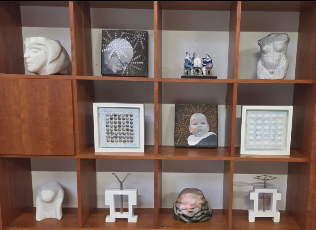 Udstillingen “Stenens stemme” inkluderer malerier, skulpturer, keramik og mixed media mm, og værkerne inviterer til refleksion over materialernes betydning for temaet. Det er en udstilling hvor hver deltager lader sin egen kunstneriske stemme møde stenens stoflige og symbolske sprog. Det handler både om tyngde og lethed, om form og fortælling og om de spor, vi mennesker sætter i verden – og de spor, naturen sætter i os.